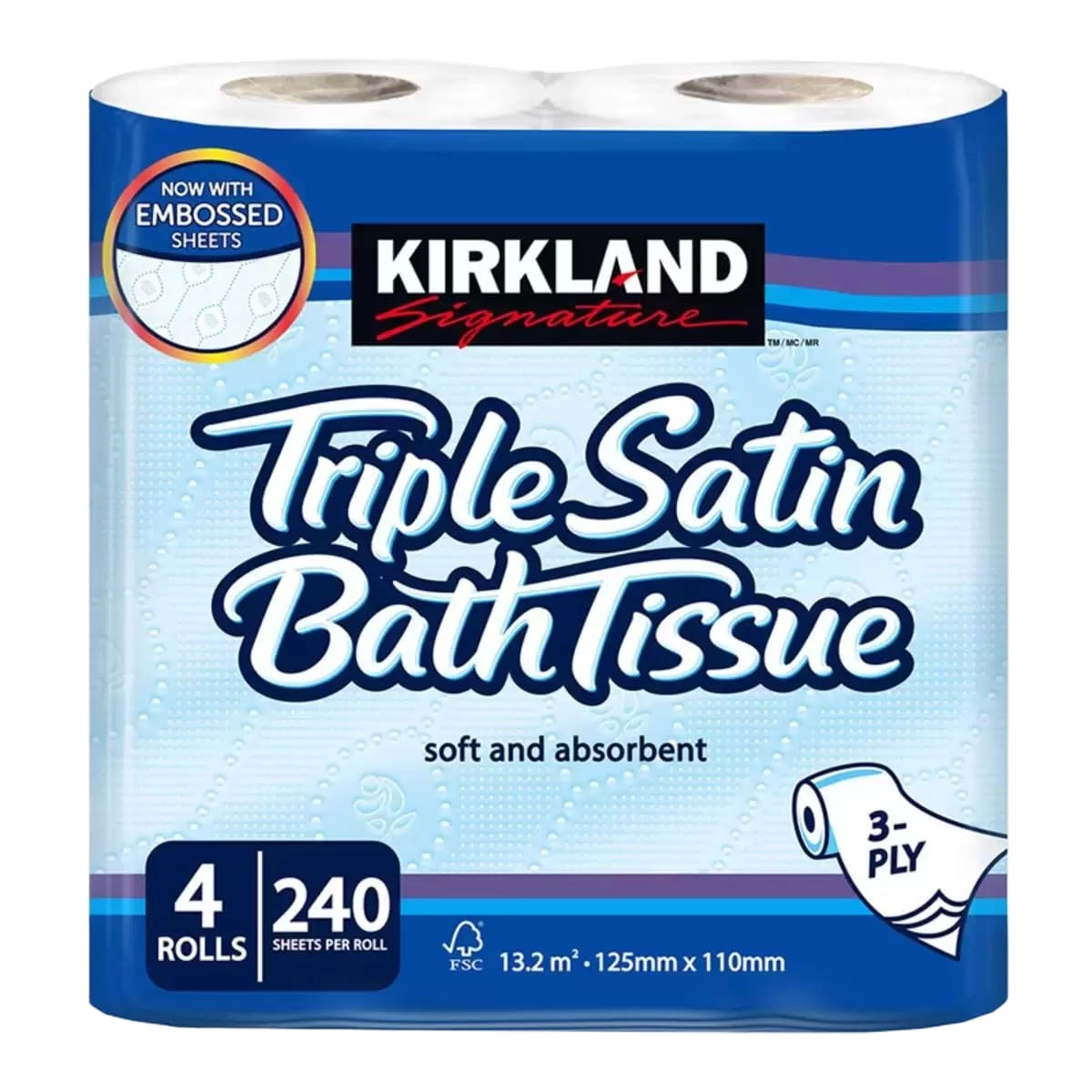 Kirkland Signature Triple Satin 3-Ply Toilet Tissue 4 Rolls